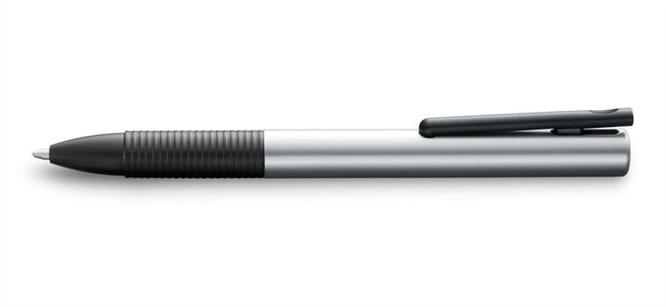 Mit seiner Tintenmine schreibt der LAMY tipo so flüssig und präzise wie man es von Lamy gewohnt ist. Und er ist sofort schreibbereit. Denn er hat keine Kappe, sondern stattdessen eine integrierte Clip-/Drücker-Mechanik, die ein extrem schnelles Umschalten ermöglicht: Wird die Tintenmine durch Herabdrücken des Clips ausgefahren, rastet gleichzeitig das untere Ende des Clips in eine kleine Vertiefung am Schaft ein, wobei der Clip seine Funktion zum Einstecken in die (Jacken-)Tasche verliert. Ein kurzer Druck auf das obere Clipende bringt den Clip wieder in seine ursprüngliche Position, und die Minenspitze verschwindet im Gerät. Nun lässt sich der LAMY tipo am abgefederten Clip auch bequem wieder in die (Jacken-)Tasche stecken. Aus Aluminium, natur eloxiert. Mit auswechselbarer Tintenroller-Mine.