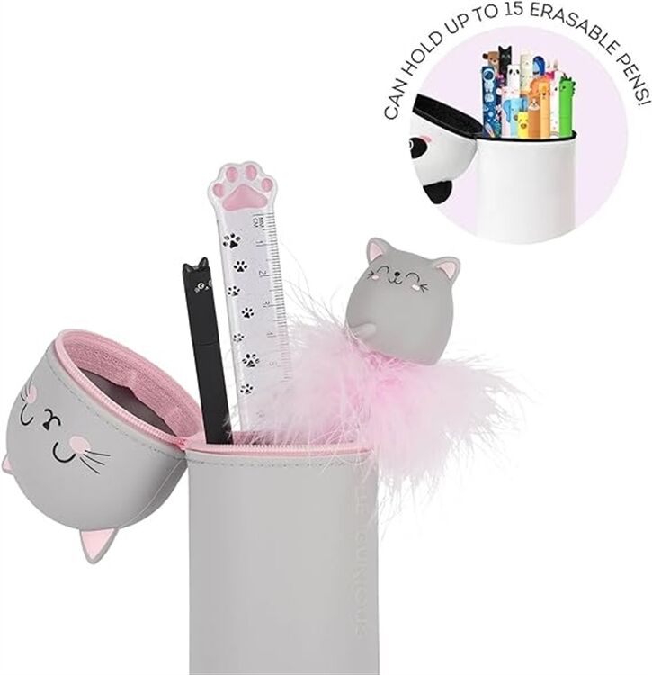 KAWAII 2-IN-1 SOFT SILICONE PENCIL CASE - KITTY