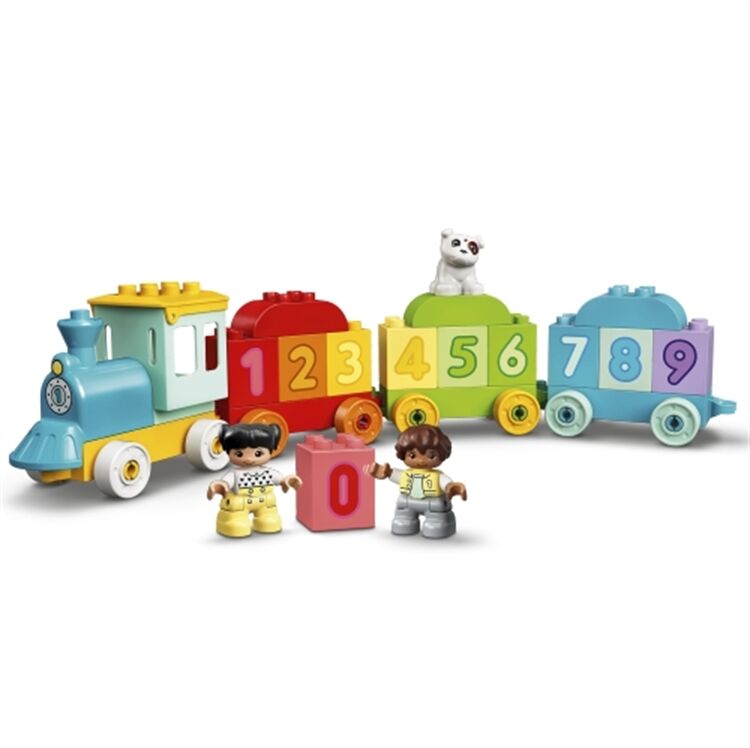 Holen Sie sich das neue farbenfrohe LEGO DUPLO Zahlenzug - Zählen lernen (10954) Lernspielzeug. Mit 10 Steinen mit Zahlen für Kleinkinder zum Auf- und Abladen, Stapeln und Sortieren, plus Mädchen-, Jungen- und Hunde-DUPLO Figuren nimmt kein Ende.