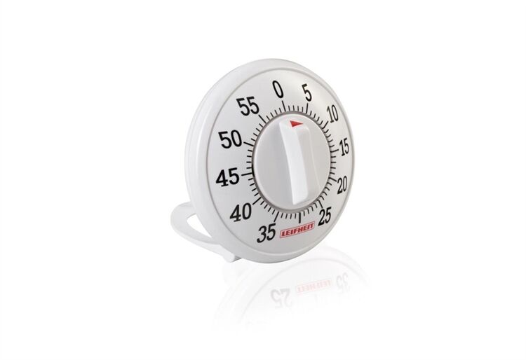 Jetzt gelingen saftige Kuchen und hauchzarte Braten auf die Minute genau: Der ComfortLine Kurzzeitmesser von Leifheit ist der perfekte Helfer in der Küche und sorgt jederzeit für die exakte Koch- und Garzeit. Mit seinem handlichen Drehknebel und der übersichtlichen Skala ist er leicht und auf die Minute genau einzustellen. Die maximale Einstell-Zeit beträgt 60 Minuten.