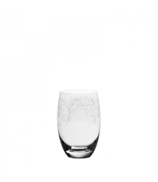 Eine feine Gravur aus herab rankenden Blüten verleiht der außergewöhnlichen Glasserie einen exquisiten Charakter. Hochwertige, beständige Pantografie. TEQTON - Qualität für mehr Brillanz und Beständigkeit. Gastronomiegeeignet, spülmaschinenfest, stoßfest, kristallklar