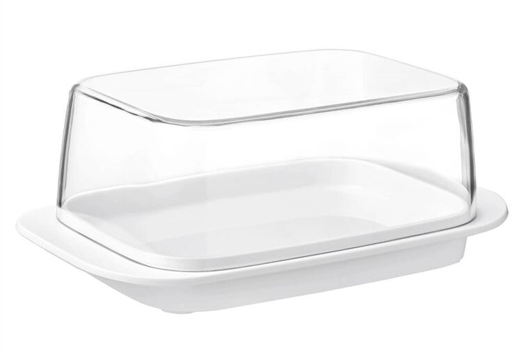 Weiße Butterdose mit Deckel. Butter wird hygienisch aufbewahrt mit dieser weißen Butterdose von Mepal mit transparentem Deckel. Sowohl drinnen als draußen praktisch für alle Mahlzeiten am Tisch und passend für genau 250 g Butter.