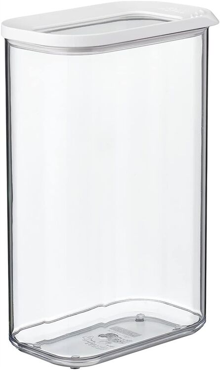 Kunststoff (SAN / Polyethylen) mit durchsichtigem Deckel und weißem Ring, sorgt für einen luftdichten Abschluss, abgerundete Ecken, leicht zu öffnen, stapelbar und spülmaschinenfest