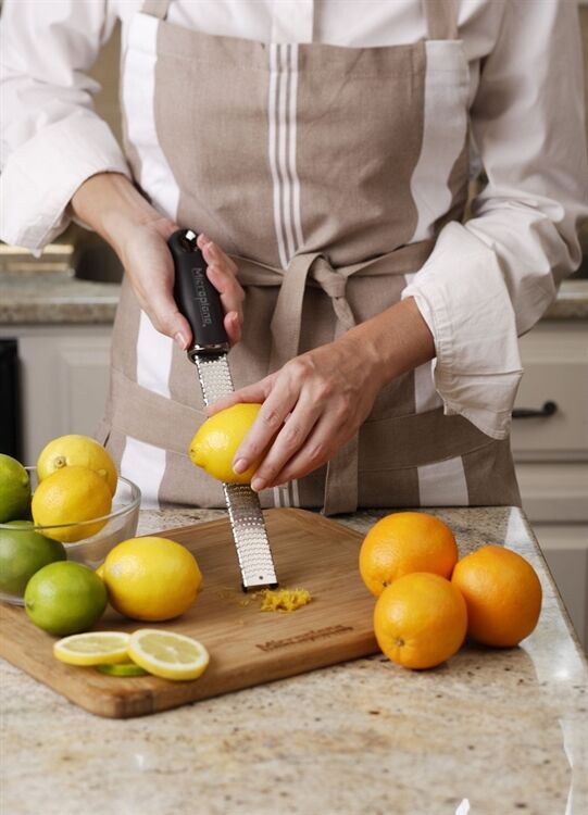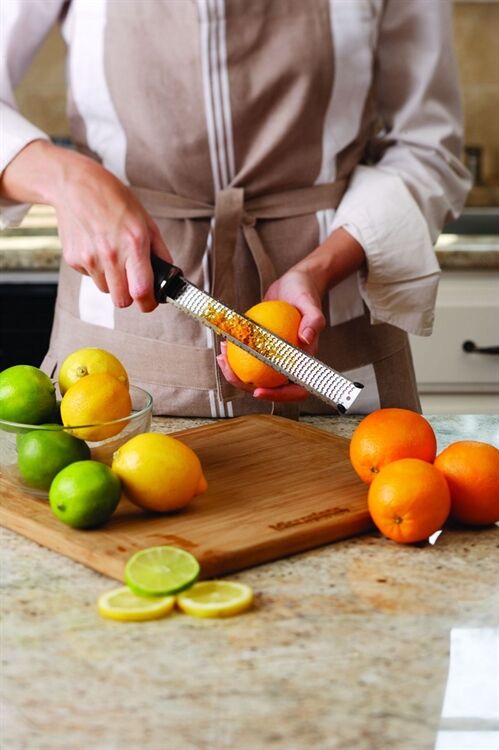 Die Zester- Reibe - aus der Holzwerkstatt in die Küche, charakteristisch lang und schmal, wie die ursprüngliche Holzraspel. Mit dem Microplane Klassiker, der Geschichte geschrieben hat, reiben Sie dank der rasiermesserscharfen, photo- geätzten Klinge - made in USA - Hartkäse, Ingwer, Knoblauch, Gewürze, Schokolade, Trüffel, Nüsse uvm. und zesten Zitrusschalen ganz fein. Die Lebensmittel werden präzise geschnitten und nicht zerdrückt. Der unentbehrliche Klassiker für Profi- und Hobbyköche liefert mit seiner leistungsstarken Klinge jedes Mal erstklassige Reibergebnisse ohne Kraftaufwand. Die Lebensmittel gleiten sanft und mühelos über die Reibfläche, ohne dass das Reibgut an den Schneidkanten kleben bleibt. Die breite Farbpalette der Griffe bietet eine für jeden Geschmack. Der ergonomische Soft- touch- Griff bietet sicheren Halt und die Gummifüßchen schützen vor Kratzern auf der Arbeitsfläche. Die wiederverwendbare Schutzhülle ermöglicht ein sicheres Verstauen. Bequeme Reinigung: einfach unter fließendem Wasser abspülen und trocknen lassen. Spülmaschinengeeignet. Mit dem Original unter den photo- geätzten Reiben wird das Kochen, Backen, Grillen oder Garnieren zum Vergnügen!