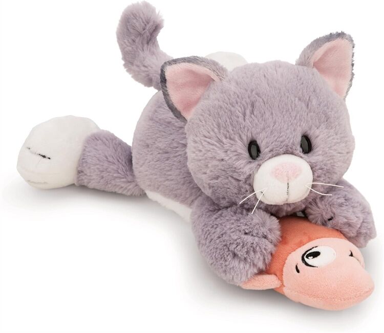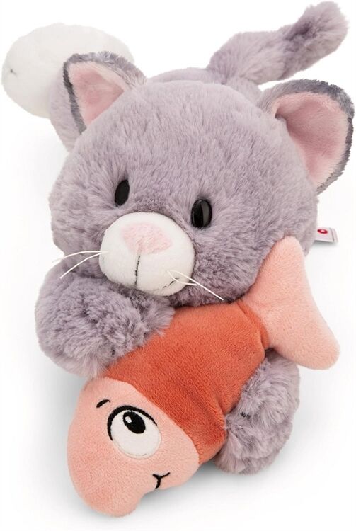 Kuscheltier Katze grau & Fisch30cm liegend GREEN