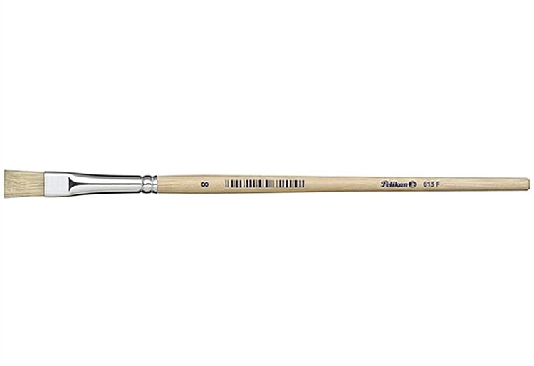 Größe 8, reine Schweinsborsten, nahtlose Aluminiumzwinge, naturbelassener, stumpfer Holzstiel, kurze Quaste