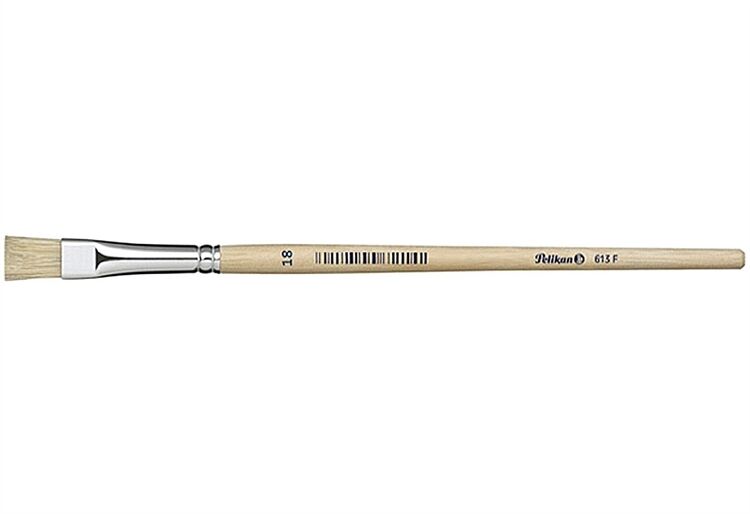 Größe 18, reine Schweinsborsten, nahtlose Aluminiumzwinge, naturbelassener, stumpfer Holzstiel, kurze Quaste