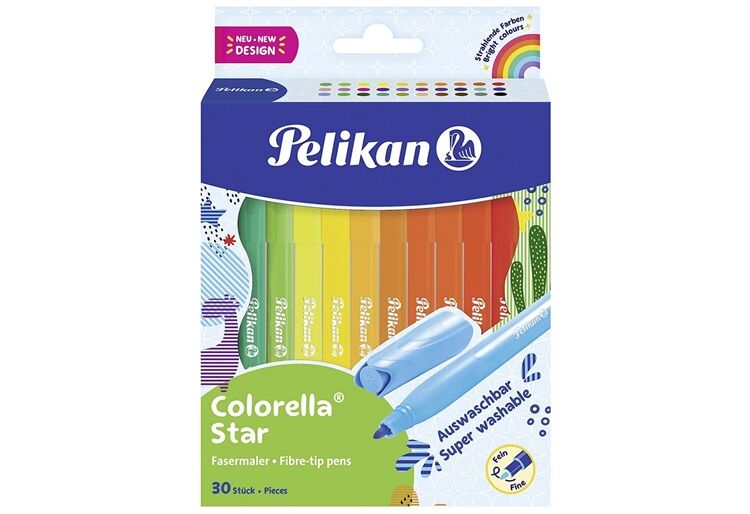 Die Fasermaler Colorella® Star von Pelikan sind sowohl für die Schule als auch für die Freizeit die perfekte Ausstattung. Die 30 ergonomischen Fasermaler sind in der umweltfreundlichen Faltschachtel verpackt und eignen sich ideal für kreative Auszeiten.