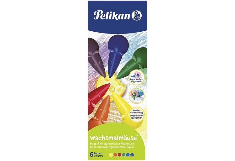 Kindgerechte Wachsmalstifte in Mäuseform in 6 Farben (Blau, Rot, Violett, Grün, Gelb, Orange)