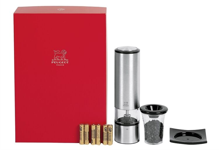 Edelstahl, U´SELECT-Technik, mit Sensorautomatik, ausgestattet mit 2 LED zur Beleuchtung, im Geschenkkarton mit Batterien, Gewürzbehälter und Trichter