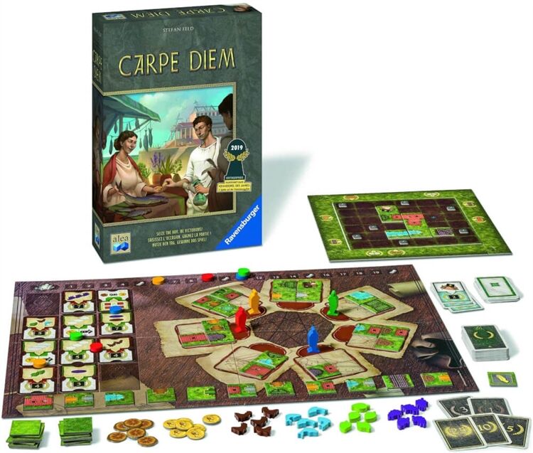 Die 2-4 Spieler schlüpfen in die Rolle reicher Patrizier im alten Rom. Sie bauen sich ihr eigenes Stadtviertel auf. Dazu legen sie ergiebige Kräutergärten und fischreiche Teiche an. Ebenso errichten sie eindrucksvolle Villen und unterschiedliche Unterkünfte für ihre Bediensteten. Alles nach dem Motto: Nutze den Tag. Ein raffiniertes Bau- und Legespiel mit einfachen Regeln, aber trotzdem viel Abwechslung und einem hohen und lang anhaltenden Spielreiz. Für 2-4 Spieler. Ab 10 Jahren. Spieldauer: ca. 45-75 Minuten.