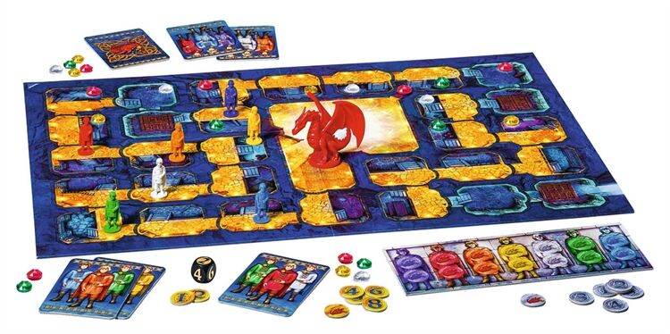 Die 2 bis 7 Spieler ab 8 Jahren würfeln eine bunt gemischte Heldentruppe durch den Drachenhort. Wer rettet die eigenen (geheimen) Figuren vor dem Drachen und hält zugleich die anderen durch Fallen und Winkelzüge auf?