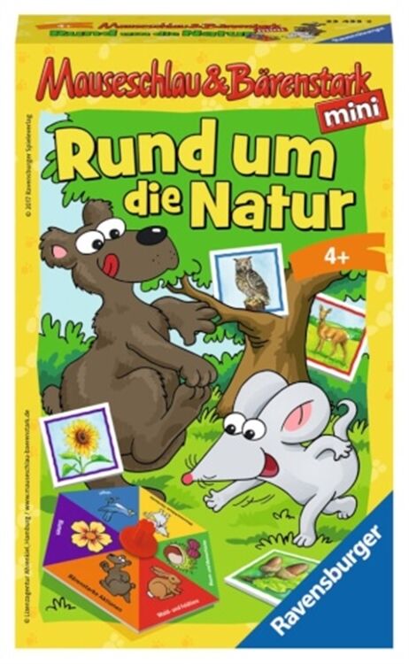 Mit Mauseschlau & Bärenstark geht's in die Natur! Dort lernen die Spieler heimische Tiere, Blumen, Baum-und Beerenfrüchte kennen, Außerdemkönnen sie zeigen, wie gut sie Tiere darstellen und Tierstimmen nachahmen können, Wer zudem etwas Geschick beim Kreiseln und ein gutes Gedächtnis beweist, wird als Erster 6 Bildkarten sammeln und gewinnen!