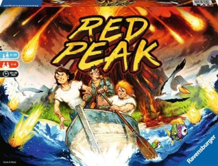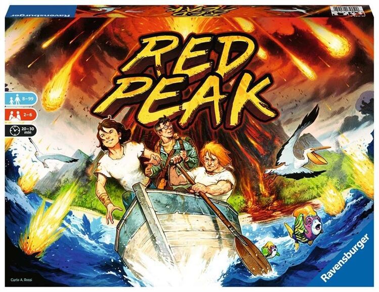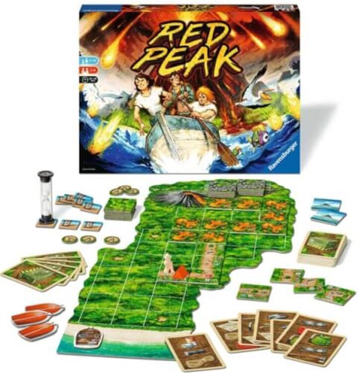 Die 2-6 Spieler sind eine Gruppe wagemutiger Abenteurer und tatendurstiger Forscher, Es hat sie auf eine neu entdeckte Vulkaninsel verschlagen, Doch dann kündigt #Red Peak, der über allem thronende Vulkan im Norden der Insel, seinen Ausbruch mit lautem Grollen an, Die einzige Rettung ist, so schnell wie möglich wieder an den Strand der Insel zu gelangen, Wo # hoffentlich # noch ein Boot auf die Gruppe wartet ,,, Und so kämpfen sich die Spieler mit allen zur Verfügung stehenden Mitteln durch den schier un-durchdringlichen Dschungel # stets die glühende Lava im Nacken!  Wird sie es schaffen, das Boot zu erreichen, bevor die heißen Geröllmassen das Camp verschlingen?
