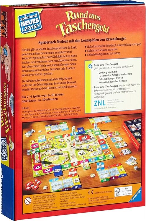 Wer hat Lust, über den Rummel zu ziehen? Dort könnt ihr Spielsachen oder Kleinigkeiten zu essen kaufen, Geld verdienen oder Attraktionen erleben. Wer aber etwas Taschengeld spart, kann sich sogar einen Herzenswunsch erfüllen. Denn wer sein Geld clever einteilt, gewinnt. Die Kinder entscheiden selbstständig, ob und wofür sie ihr Geld ausgeben. So wird das Bewusstsein für Preise und das Rechnen mit Geld trainiert.Für 2 - 4 Spieler ab 6 Jahren. Spieldauer: 20 - 30 Minuten.