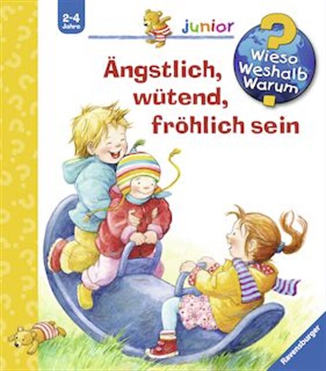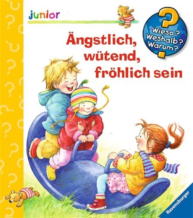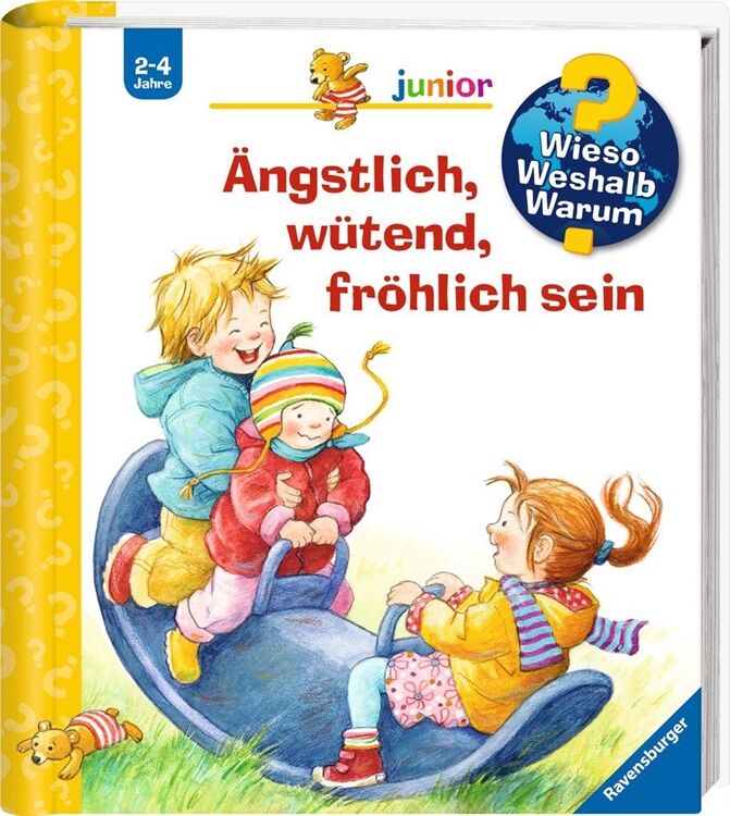 Mit dem Wissensbuch Ängstlich, wütend, fröhlich sein aus der Ravensburger-Reihe Wieso? Weshalb? Warum? Junior erfahren Kinder allerlei Wissenswertes über ihre Gefühlswelt, Gerade noch ein kleiner Zornteufel und schon wieder ein glückliches Kind! Die Gefühle wechseln schnell, Sie zu entdecken und zu verstehen ist ein wichtiger Lernprozess für Kleinkinder, Der Kinderalltag ist ein Wechselbad der Gefühle und die Wahrnehmung von Gefühlen ein wichtiger Lernprozess im Kleinkindalter, Jeder ist mal wütend, jeder ist mal traurig und jeder hat auch mal Angst, Doch Gefühle ändern sich gerade bei Kindern schnell, Oft schon in der nächsten Minute sind sie wieder fröhlich oder vielleicht sogar mutig, Dieses Buch von Ravensburger hilft Kindern, ihre eigenen Gefühle und die anderer zu entdecken, zu verstehen und anzunehmen, Dabei liefern die dargestellten Situationen, die jedes Kind aus seinem Alltag kennt, Anlass zum gemeinsamen Gespräch, Ab 2 Jahren,