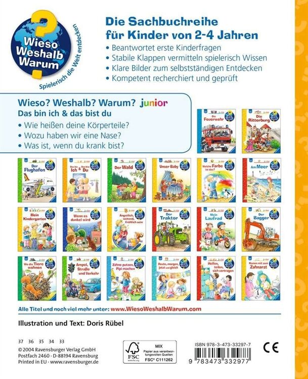 Wieso? Weshalb? Warum? Junior Band 5: Das bin ich & Das bist du, Was kann ich mit meinen Händen alles machen? Wozu ist die Nase da? - Tasten, streicheln, kratzen und noch viel mehr, Mit den Beinen kann ich laufen und hüpfen und mit den Ohren hören, Und du? - Ein erstes Körperbuch für ganz Kleine, mit dem sie ihren Körper und ihre Gefühle kennen lernen können, Sich selbst kennen zu lernen ist wohl eine der schönsten Erfahrungen, Mit vielen Klappen spielerisch und kindgerecht lädt dieser Band dazu ein, Ab 2 Jahren, Mit 16 Seiten,