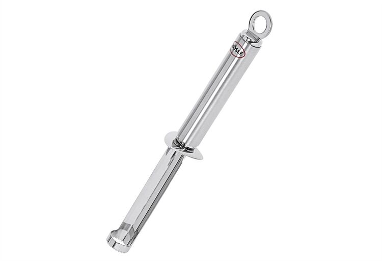 Der Fruchentkerner für den perfekten Fruchtgenuss. Die gleichmäßigen, nicht zu kleinen Zacken lassen sich leicht eindrehen, und die glatte Lauffläche verhindert eine weitergehende Beschädigung der Frucht. Vor allem das Kerngehäuse von Äpfeln kann dadurch leicht entfernt werden. Das Produkt ist aus Edelstahl 18/10 und somit robust, hygienisch und resistent gegen Fruchtsäuren. Der Entkerner liegt gut in der Hand und kann dank der Aufhängeöse griffbereit an der Küchenleiste aufbewahrt werden. Nach Gebrauch können Sie das Produkt problemlos in der Spülmaschine reinigen.