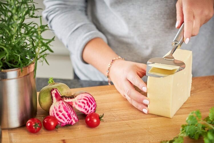 Durch den schmalen Spalt der scharfgeschliffenen, gezackten Klinge wird Hart- und Schnittkäse fein aufgeschnitten und entwickelt dadurch gut sein Aroma.