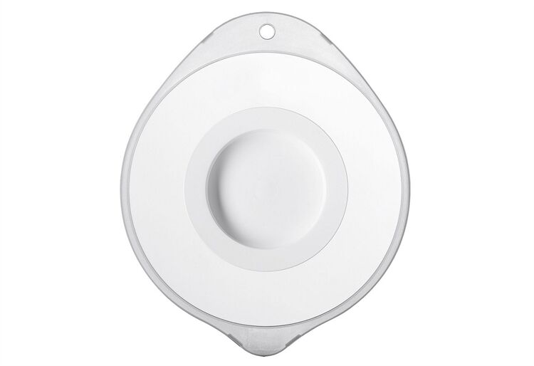 Deckel zum Sahne schlagen für 3 L Margrethe-Rührschüsseln (jedoch mit Ausnahme der Stahl- und Porzellanschüsseln). Der kleine Deckel in der Mitte kann entfernt werden, sodass der Deckel beim Schlagen von Sahne o. ä. verwendet werden kann – oder Sie können ihn sitzen lassen und haben einen ganz normalen Deckel.