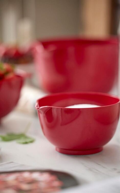 Die Margrethe-Schüssel ist die klassische Rührschüssel mit dem guten Griff, dem praktischen Ausguss und dem rutschfesten Bodenring. Die neue Version der Margrethe-Schüssel besteht aus Durostima®, einem recycelbaren Kunststoffmaterial. Die Schüssel ist jetzt noch robuster und bruchsicherer, und mit dem neuen Material auch für die Verwendung in der Mikrowelle und im Gefrierschrank geeignet. Die Margrethe-Schüssel eignet sich sowohl für die Zubereitung als auch zum Servieren, und wenn ein Deckel dazu gekauft wird, verwandelt sich die Rührschüssel in eine praktische Aufbewahrungsschüssel. Die Margrethe-Schüssel wurde in Kopenhagen im Designstudio von Sigvard Bernadotte und Acton Bjørn entworfen und im Jahr 1954 mit Erlaubnis des Königshauses nach der Königin Margrethe II benannt. Die Schüssel ist in vielen verschiedenen tollen Farben und in nicht weniger als 8 verschiedenen Größen erhältlich. Geeignet für die Spülmaschine, die Mikrowelle und den Gefrierschrank.