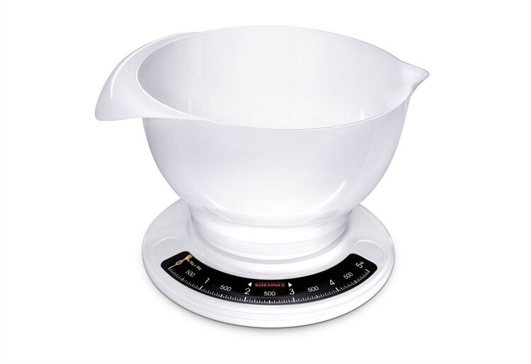 Kennen Sie den Bestseller? Die Culina Pro ist eine der meistverkauften analogen Küchenwaagen weltweit und ein echter Dauerbrenner auf dem Markt. Die praktische große Rührschüssel mit Griff und Ausgießer fasst 2,5 Liter und ist immer ein treuer Begleiter. 5 kg Tragkraft und 50-g-genaue Teilung sind optimal für den täglichen Gebrauch. Super einfach in der Handhabung mit mechanischer Zuwiegefunktion ist sie robust und leicht zu reinigen durch pflegleichten weißen Kunststoff.