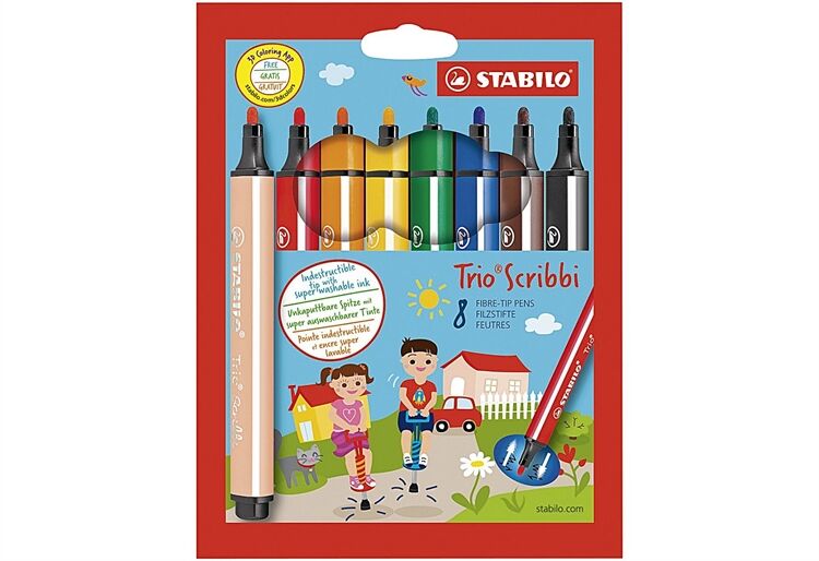 Dank seiner gefederten, dicken Spitze ist der STABILO Trio Scribbi nahezu unverwüstlich. Das ergonomische Dreikant-Design sorgt beim Malen für sicheren Halt in Kinderhänden. Die intensiven Farben sind super-auswaschbar und lassen sich leicht von Händen und Kleidung entfernen. Die Kappe lässt sich einfach am Stiftende aufstecken. ACHTUNG! Nicht geeignet für Kinder unter 36 Monaten, wegen verschluckbarer Kleinteile.