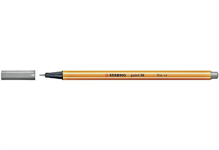Strichstärke 0,4 mm, Faserspeicher, metallgefasste Spitze, geeignet für Schablone, lichtbeständige Tinte auf Wasserbasis, kann einige Tage offen liegen bleiben, ohne einzutrocknen, Kappe am Stiftende aufsteckbar