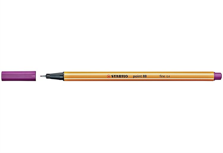 Strichstärke 0,4 mm, Faserspeicher, metallgefasste Spitze, geeignet für Schablone, lichtbeständige Tinte auf Wasserbasis, kann einige Tage offen liegen bleiben, ohne einzutrocknen, Kappe am Stiftende aufsteckbar