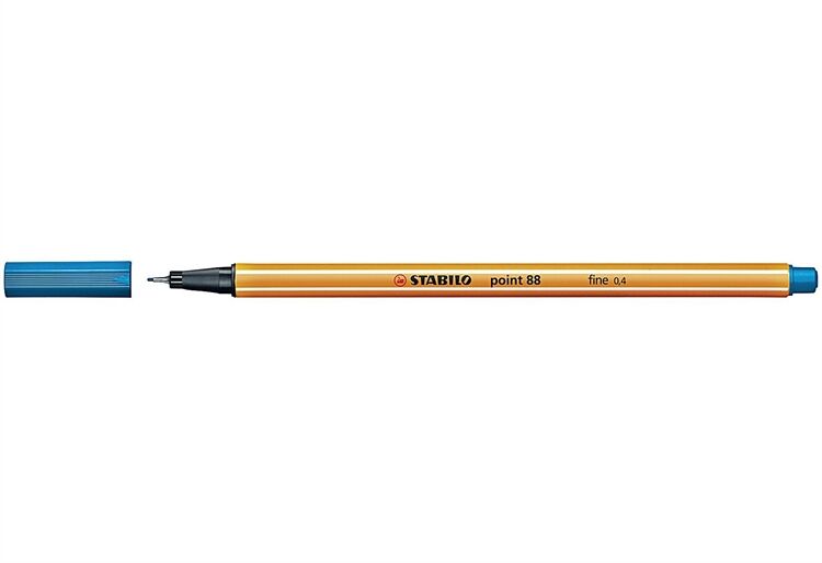 Strichstärke 0,4 mm, Faserspeicher, metallgefasste Spitze, geeignet für Schablone, lichtbeständige Tinte auf Wasserbasis, kann einige Tage offen liegen bleiben, ohne einzutrocknen, Kappe am Stiftende aufsteckbar