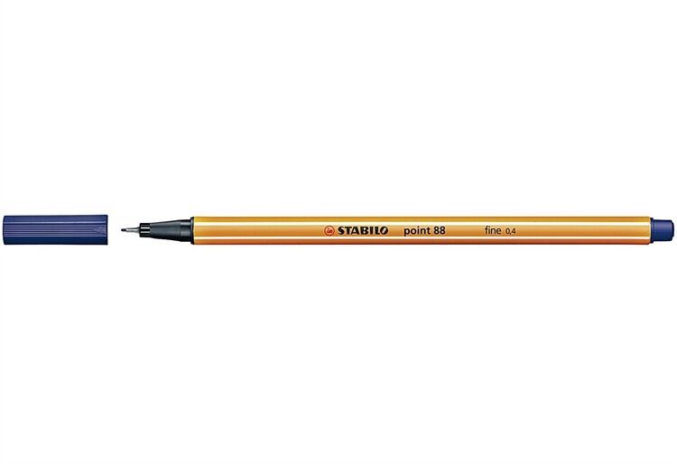 Strichstärke 0,4 mm, Faserspeicher, metallgefasste Spitze, geeignet für Schablone, lichtbeständige Tinte auf Wasserbasis, kann einige Tage offen liegen bleiben, ohne einzutrocknen, Kappe am Stiftende aufsteckbar