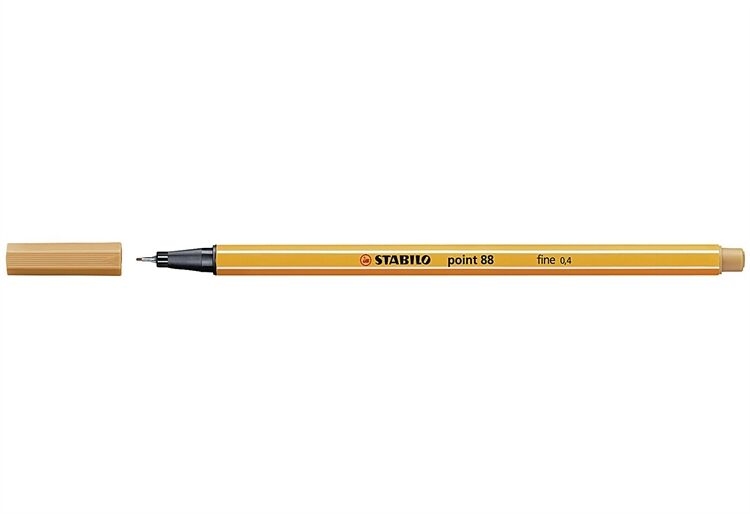 Strichstärke 0,4 mm, Faserspeicher, metallgefasste Spitze, geeignet für Schablone, lichtbeständige Tinte auf Wasserbasis, kann einige Tage offen liegen bleiben, ohne einzutrocknen, Kappe am Stiftende aufsteckbar