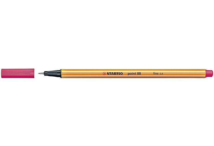 Strichstärke 0,4 mm, Faserspeicher, metallgefasste Spitze, geeignet für Schablone, lichtbeständige Tinte auf Wasserbasis, kann einige Tage offen liegen bleiben, ohne einzutrocknen, Kappe am Stiftende aufsteckbar