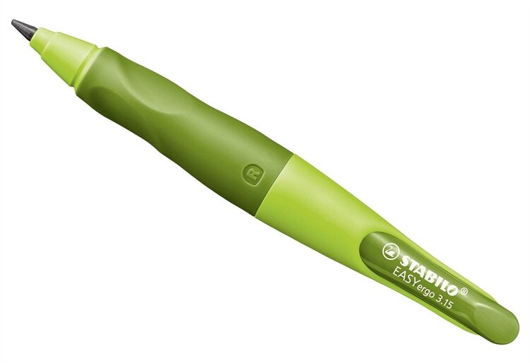 STABILO EASYergo 3.15. Ergonomischer Druckbleistift zum Schreibenlernen für Vorschüler und Schüler ab 5 Jahren. Innovatives, ergonomisches Stift-Design - speziell für Schreibanfänger entwickelt. Besonders kindersicher, da Stift nur aus 2 Teilen besteht. In speziellen Versionen für Links- und Rechtshänder. Griffzone aus rutschfestem Material. Trendige Farbkombinationen mit Feld zur Namensbeschriftung. Spitzer passend im ergonomischen Design. Extra dicke, bruchsichere Mine (Durchmesser 3,15 mm). Minen nachfüllbar in HB.