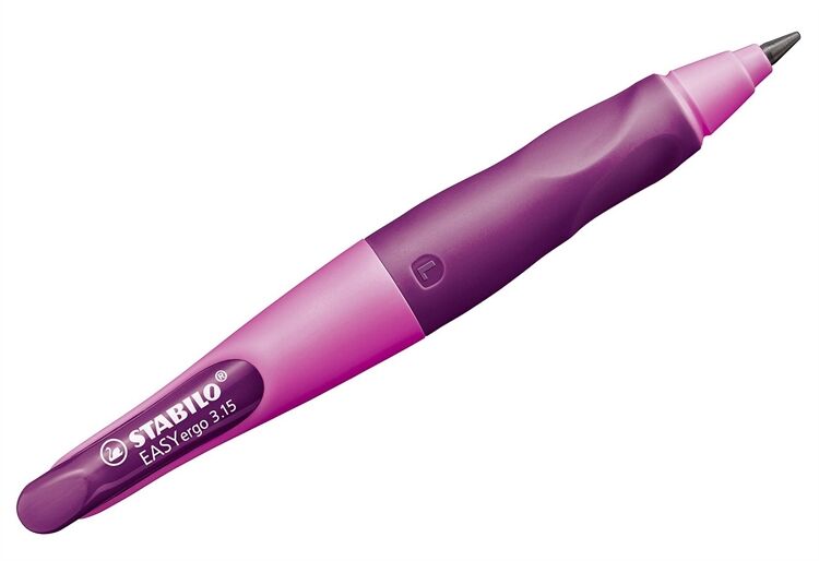 STABILO EASYergo 3.15. Ergonomischer Druckbleistift zum Schreibenlernen für Vorschüler und Schüler ab 5 Jahren. Innovatives, ergonomisches Stift-Design - speziell für Schreibanfänger entwickelt. Besonders kindersicher, da Stift nur aus 2 Teilen besteht. In speziellen Versionen für Links- und Rechtshänder. Griffzone aus rutschfestem Material. Trendige Farbkombinationen mit Feld zur Namensbeschriftung. Spitzer passend im ergonomischen Design. Extra dicke, bruchsichere Mine (Durchmesser 3,15 mm). Minen nachfüllbar in HB.