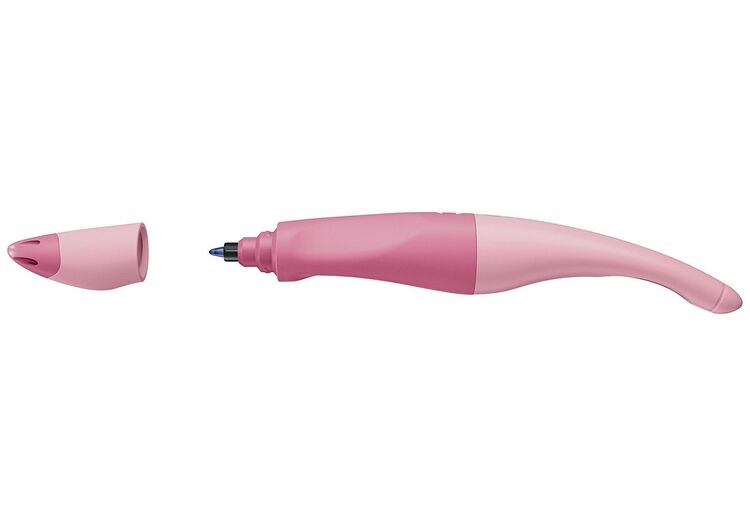 STABILO® EASYoriginal Pastel. Ergonomischer Tintenroller für Schreibanfänger und Schüler ab 6 Jahren. Erster Tintenroller in ergonomischem Design - speziell für Links- und Rechtshänder. In stylischen Pastellfarben. Griffzone aus rutschfestem Material. Entspannte Handhabung gegen frühzeitiges Ermüden der Muskulatur und Schmerzen beim Schreiben. Weiches Schreiben ohne Klecksen und Kratzen. Tinte fließt nur wenn der Stift bewegt wird, daher keine 'Tinten-Seen'. Gleichmäßiger Tintenfluss unabhängig vom Schreibdruck. Tinte trocknet besonders schnell - für ein sauberes Schriftbild. Eine neue Schreibspitze gibt es mit jeder neuen Patrone: garantiert einfaches Nachfüllen. Wahlweise nachfüllbar mit königsblauer löschbarer Schultinte, schwarzer oder roter Tinte. Die Patronen sind in 2 Strichstärken erhältlich: 0,3 mm (fine) in blau, für feineres Schreiben und 0,5 mm (medium) blau, schwarz, rot. Mit Feld zur Namensbeschriftung. Kappe am Stiftende aufsteckbar.