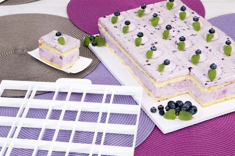 Mit dem Kucheneinteiler können Sie Ihren Kuchen oder Torte ind 24 oder 30 genau gleiche Teile einteilen. Dieses Produkt ist vielseitig einsetzbar: – Einteilen: als Einteiler von Sahne- und Cremeschnitten sowie Käse- oder Blechkuchen in gleich große Kuchenstücke – Markieren: als Markierungshilfe bei Gebäcken mit festen Oberflächen (z. B. Bienenstich oder Streuselkuchen) – Schneiden: zum Ausstechen von ausrollbaren Teigen (z. B. Blätter-, Mürbe-, Plunder- oder Lebkuchenteig), für die Herstellung von Kleingebäck wie Blätterteig-Hörnchen, Pastetchen und Plundertaschen. Aus hochwertigem, lebensmittelechtem Kunststoff, spülmaschinengeeignet. In Faltschachtel. Mit Anleitung.