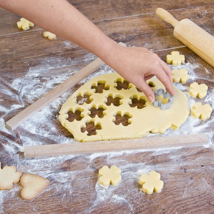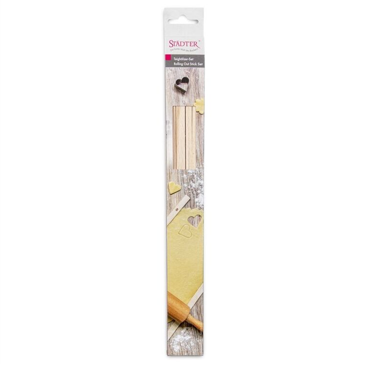 Wenn Ihr Teig immer die gleiche Höhe oder Stärke haben soll, wird Sie dieses 6-teiliges Teighölzer-Set erfreuen. Mit den Hölzern erzielen Sie eine gleichmäßige Teigdicke beim Ausrollen, und das Gebäck hat immer die gleiche Stärke. Für Teigstärken von 3, 5 und 10 mm. Unsere Küchenhelfer werden aus hochwertigem, unbehandeltem Buchenholz hergestellt. Wir empfehlen, den Küchenhelfer nach Gebrauch mit einem milden Spülmittel und Spültuch oder Küchenbürste zu reinigen. Hinweis zu unseren Holzprodukten: Holz ist ein Naturprodukt und kann daher in Form und Farbe abweichen. In Faltschachtel zum Aufhängen.