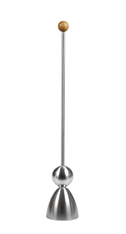 CLACK „Clack“ - den Eierschalensollbruchstellenverursacher mit dem bezeichnenden Namen bringen Sie wie folgt zum Einsatz: Metallkappe aufs weich oder hart gekochte Ei setzen und die Schlagkugel am Führungsstab frei fallen lassen – clack! So erhält die Eierschale eine ringförmige Bruchstelle, an der sich nun leicht die Ei-Kappe mit einem Messer abheben lässt. „Clack“ - clackt jedes Ei beim Kragen! designed by Hartmut Dolp, Markus Roling, Volker Zitzmann | Germany