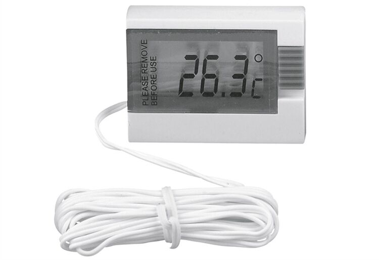 für den Innenbereich +60 / -10° und den Außenbereich +70 / -50°. Mit Kabel ca. 2,5 m, Ständer, inkl. Batterie 1 x 1,5 V LR44. Weiß.