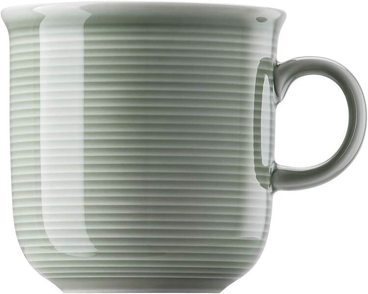 THOMAS Becher mit Henkel 'Trend Colour', Ø 8 cm, H 7,5 cm, 0,28 l, moss green, Porzellan. Bei diesem Dekor werden die Farben bei über 1000°C in die Glasur eingeschmolzen. Hierbei erweicht die Glasur und der Dekor sinkt in die Glasur ein. Dadurch wird er unzerstörbar in Farbe und Leuchtkraft, er ist kratz- und abriebfest. Er kann bedenkenlos in der Spülmaschine gereinigt werden und in der Mikrowelle benutzt werden.