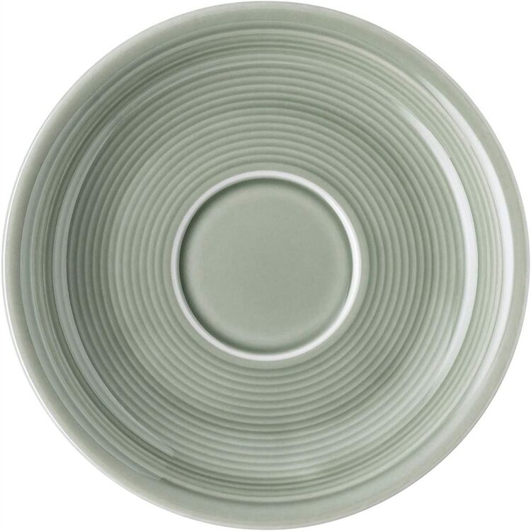 THOMAS Kaffee-Untertasse 'Trend Colour', Ø 14 cm, moss green, Porzellan. Bei diesem Dekor werden die Farben bei über 1000°C in die Glasur eingeschmolzen. Hierbei erweicht die Glasur und der Dekor sinkt in die Glasur ein. Dadurch wird er unzerstörbar in Farbe und Leuchtkraft, er ist kratz- und abriebfest. Die Kaffee-Untertasse kann bedenkenlos in der Spülmaschine gereinigt werden und in der Mikrowelle benutzt werden.