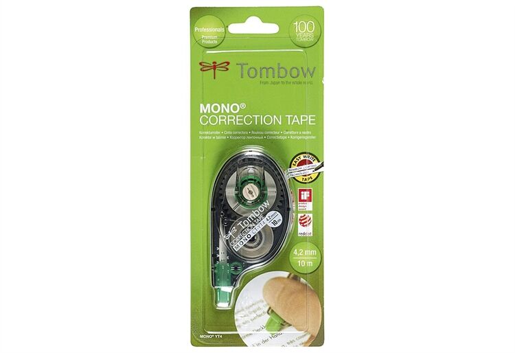 Bandgröße: 10 m x 4,2 mm, seitliche Abrolltechnik, keine Trockenzeit, sofortiges und sauberes Überschreiben, abrollbar bis zum letzten Millimeter, transparentes Gehäuse