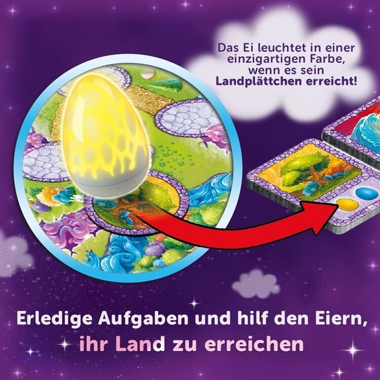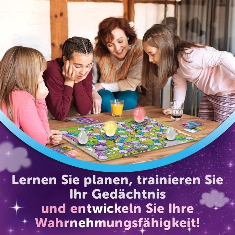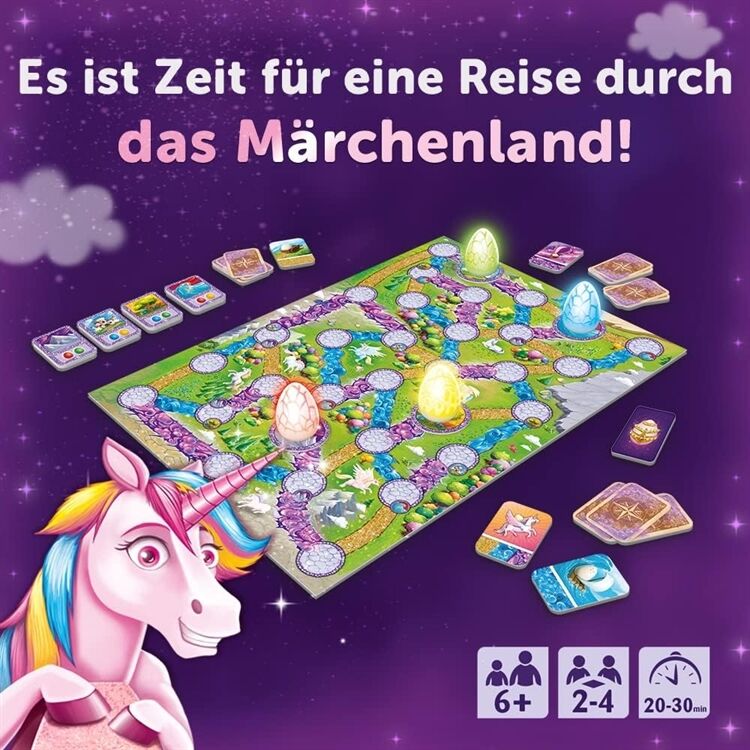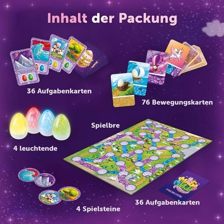 Magajaja Unicorns ist ein Familienspiel mit märchenhafter Atmosphäre für 2-4 Spieler. Die leuchtenden elektronischen Eier und die magnetischen Spielsteine versetzen dich in eine magische Stimmung!