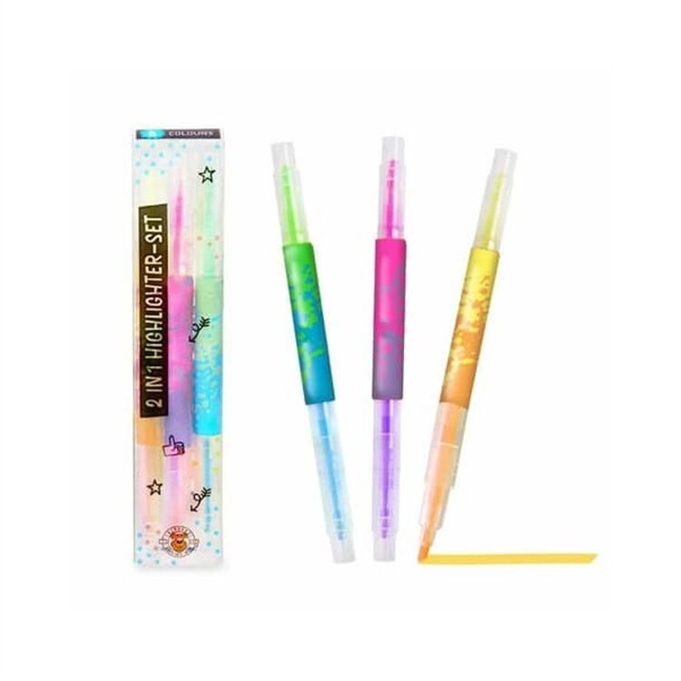 Inhalt: 3 Stifte in den Neon-Farbkombinationen grün-blau, gelb-orange, lila-pink.