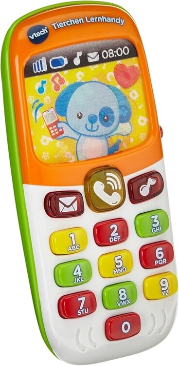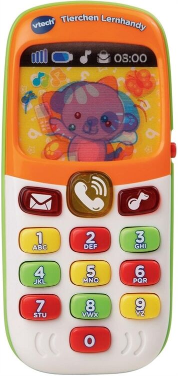 Das Tierchen Lernhandy sorgt für interaktiven Spielspaß bei den Kleinen! Freundliche Bilder, bunte Tasten und blinkende Lichter animieren Ihr Kind zum Spielen und Lernen. Mit den zehn Zahlentasten, der blinkenden Nachrichten-, Wähl- und Musiktaste, lernt Ihr Kind spielerisch erste Zahlen, Farben und Buchstaben kennen. Fröhliche Melodien, gesungene Lieder und echte Telefongeräusche fördern die Aufmerksamkeit Ihres Kindes und es kann telefonieren wie die Großen! Ring, ring - farbenfroher Telefonierspaß mit dem Tierchen Lernhandy!, Das bunte Tierchen Lernhandy klingelt, spricht kurze Sätze und stellt Fragen, Animiert zum klassischen Rollenspiel, Zahlen von 0-9, 3 aufleuchtende Tasten, 10 Zahlentasten, Mit lustigen Telefongeräuschen, Bilderanzeige, 2 gesungene Lieder, 8 Kindermelodien (Liedtexte in der Bedienungsanleitung), Kindersicheres Batteriefach und Abschaltautomatik Für die Entwicklung Ihres Kindes: ,Entwicklung der motorischen Fähigkeiten ,Das Drücken der Tasten schult die Feinmotorik Ihres Kindes. Förderung der Sprachentwicklung ,Freundliche Sätze und gesungene Lieder animieren Ihr Kind zum Nachsprechen und Mitsingen. Entdecken von Musik und Geräuschen ,Lustige Geräusche, Melodien, gesungene Lieder, blinkende Lichter und Farben fördern die Aufmerksamkeit des Kindes. Gedächtnistraining ,Durch die Telefontasten und die lebendigen Bilder, lernt das Kind erste Zahlen, Buchstaben, Farben und Tiere kennen. Demobatterien (2 x AAA) enthalten.