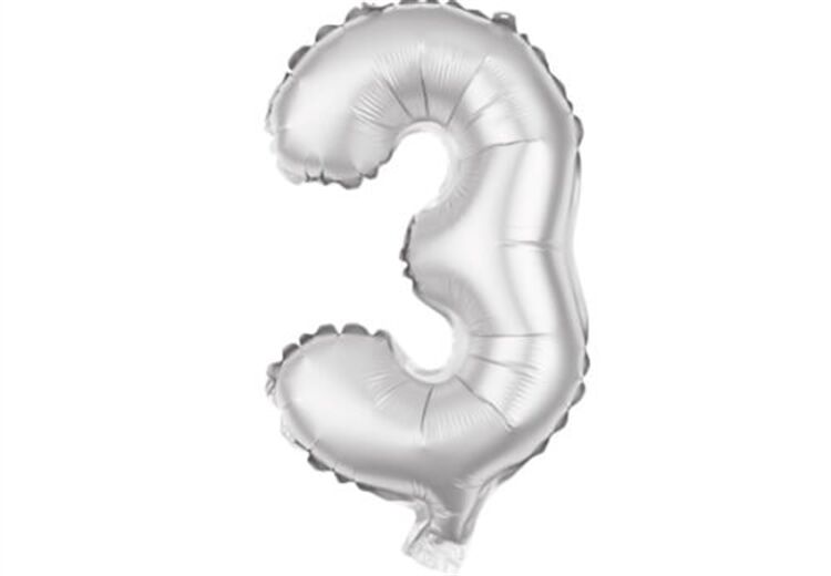 Folienballon Zahl 3 silber ca. 70cm