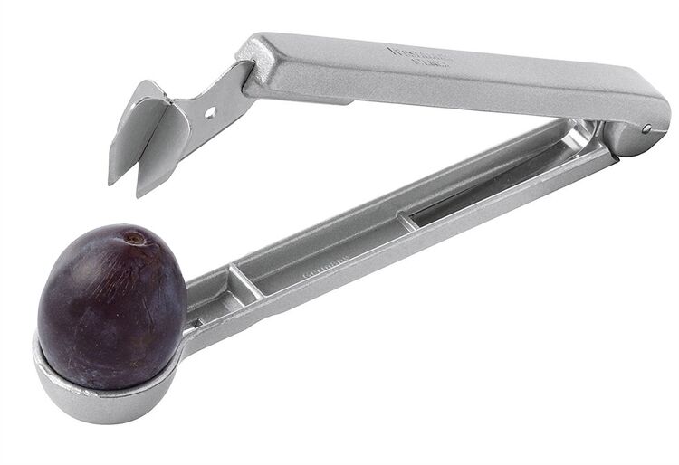 Mit dem Pflaumenentkerner wird das Entsteinen von Pflaumen schnell und effektiv. Eignet sich zum Entsteinen von frischen, konservierten oder tiefgekühlten Pflaumen oder Zwetschgen bis zu 3 cm Durchmesser. Einfach die Pflaume einlegen und zusammendrücken, schon sind die Pflaumen einsatzbereit. Material: Aluminium Druckguss, silberfarben beschichtet.