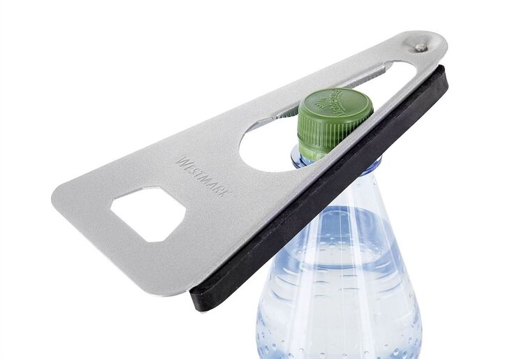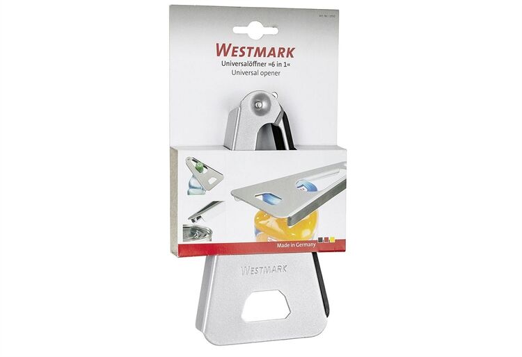 Dieser Vielzwecköffner ist ein wahres Multitalent. Er öffnet Flaschen, Gläser, Tuben oder Schraubverschlüsse mit einem Durchmesser von 1,7-9 cm. Des Weiteren ist ein Dosenlocher für Kondensmilch und ein Kapselheber integriert. Die seitlich angebrachte Gummilippe garantiert sicheren Halt an Dose, Flasche oder Glas. Die dreieckige Form liegt gut in der Hand und ermöglicht die Nutzung ohne großen Kraftaufwand. Die Gummilippe für festen, sicheren Griff hilft, Gläser, Drehverschlüsse und Tuben mühelos zu öffnen, auch ideal als Dosenlocher und Kapselheber. Material: Metall beschichtet.