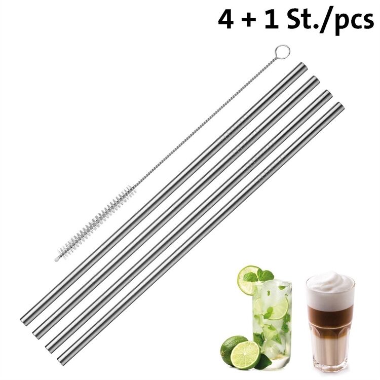 Trinkhalmset beinhaltet 4 gerade Trinkhalme und 1 Reinigungsbürstchen, umweltfreundliche, wiederverwendbare, spülmaschinengeeignet